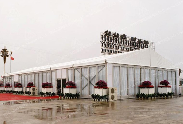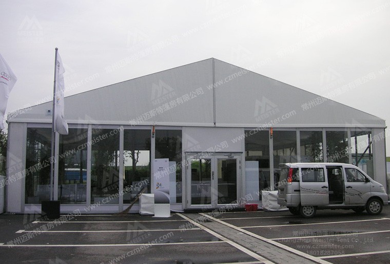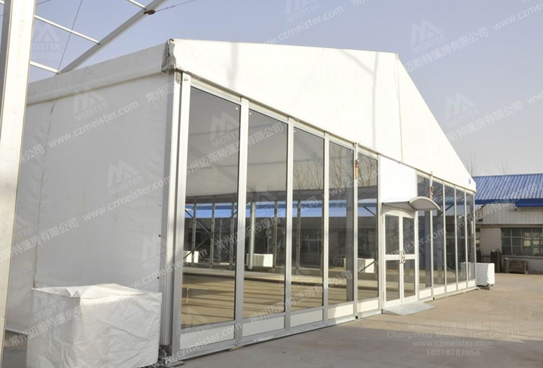 這是一款跨度為15米的篷房,四周采用玻璃幕墻作為墻體,十分美觀(guān)大氣。為了達到不同客戶(hù)的多種活動(dòng)需求,邁斯特篷房廠(chǎng)家研發(fā)的產(chǎn)品跨度范圍從3-50m不等,長(cháng)度可按3m或5m的倍數無(wú)限延伸,無(wú)論多大的展會(huì )規模我們都可以盡量滿(mǎn)足您。在配套設施方面,我們可提供地毯地板、布幔、桌椅、空調、燈具等一系列會(huì )展活動(dòng)可能用到的配件。自進(jìn)入篷房市場(chǎng)以來(lái),邁斯特穩扎穩打,服務(wù)過(guò)數百家客戶(hù)均得到一致好評,如果您也有篷房相關(guān)需求,歡迎撥打18018287058來(lái)電咨詢(xún)。