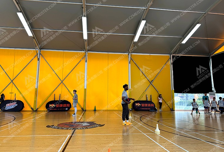 想打籃球沒(méi)有場(chǎng)地怎么辦呢?那就利用空閑區域搭一座籃球場(chǎng)篷房吧!籃球篷房有很多造型可選,比如說(shuō)人字形、弧形、拱形等,每種造型都可以成為賽場(chǎng)上的亮點(diǎn),吸睛力十足。