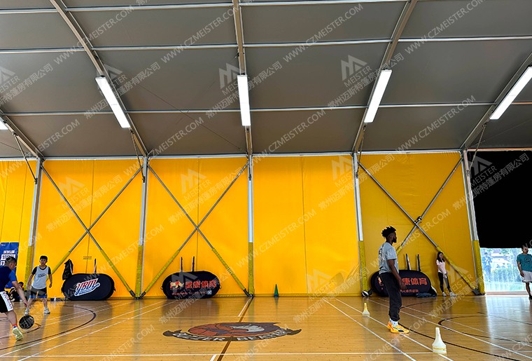 弧形籃球篷房的框架采用的是優(yōu)質(zhì)鋁合金型材,穩固性非常強,可以抵抗8-10級大風(fēng),十分安全有保障。篷布則采用的是雙面涂層PVC篷布,不僅防曬,而且防水阻燃,能夠保障篷房內部體育運動(dòng)能夠在多種天氣情況下都能夠有序進(jìn)行。