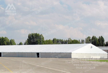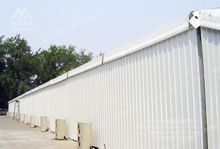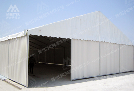 邁斯特篷房廠家具有多年篷房生產(chǎn)搭建經(jīng)驗(yàn),能夠供應(yīng)跨度3-50米不等的臨時(shí)倉儲倉庫篷房,長度可以按3或5米的倍數(shù)無限延長,即便是數(shù)千平米的要求也都可以滿足。