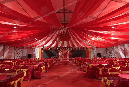 由于受到交通等客觀(guān)因素的影響,農村一般都會(huì )選擇在家里舉辦婚禮喜宴。但隨著(zhù)時(shí)代的發(fā)展,經(jīng)濟水平的提高,農村婚禮也不再滿(mǎn)足于傳統形式的露天婚禮。露天婚禮非常受自然天氣的影響,大太陽(yáng)或者雨水的降臨都會(huì )給新人和賓客帶來(lái)不好的體驗。這時(shí)婚禮篷房便能很好地解決這個(gè)問(wèn)題,在門(mén)前屋后搭建一套婚禮篷房為賓客營(yíng)造良好的就餐環(huán)境,再請廚師上門(mén)制作美味佳肴。