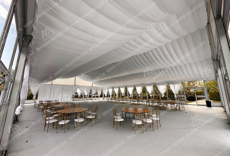 篷房的主體鋁合金框架堅固耐用,能夠抵御各種惡劣天氣的考驗,確保人們在享受舒適空間的同時(shí),也能安心無(wú)虞。此外,歐式玻璃幕墻篷房還具有良好的通風(fēng)性能,即使在炎熱的夏季,也能保持室內空氣的清新與涼爽。