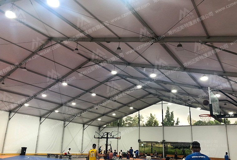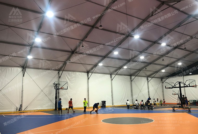 這是一組跨度30米的籃球篷房,間距為5米,采用的是經(jīng)典的人字形造型,內部無(wú)支柱支撐,空間能夠得到很好的利用。篷房籃球館號稱(chēng)是“移動(dòng)的房產(chǎn)”,即便是您的地址要搬遷,您也可以隨時(shí)拆卸并運送到新地點(diǎn)進(jìn)行快速安裝,可節約很多時(shí)間成本。