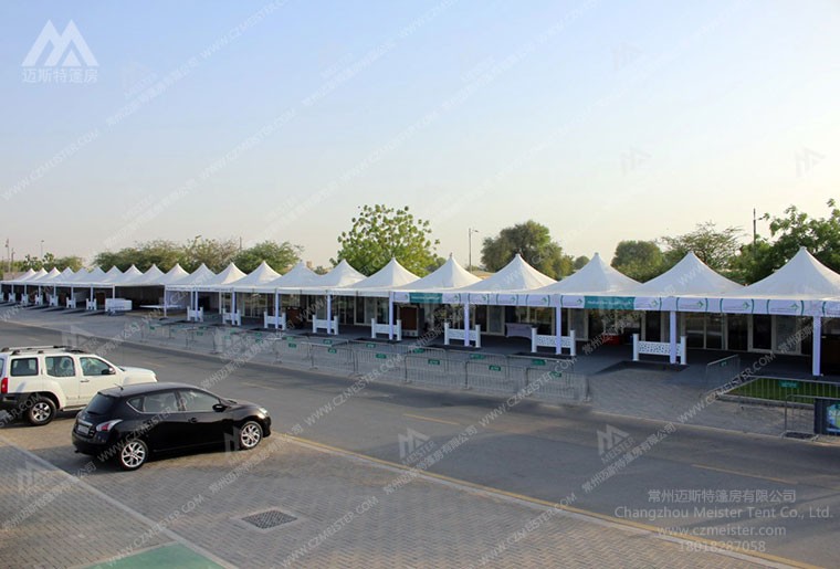 四角尖頂帳篷由于其面積較小,因此一般使用的活動(dòng)都會(huì )選擇多組進(jìn)行組合,十分美觀(guān)大氣。搭配一些篷房配套設施能夠有效提升四角尖頂帳篷的功能,為活動(dòng)提供一個(gè)安全、舒適的體驗。邁斯特篷房公司有多種規格尺寸的尖頂帳篷可供選擇,如3m×3m,4m×4m,5m×5m,6m×6m,8m×8m,10×10m等,如果有其他特殊的尺寸需求我們可提供篷房定制服務(wù),歡迎來(lái)電咨詢(xún)。