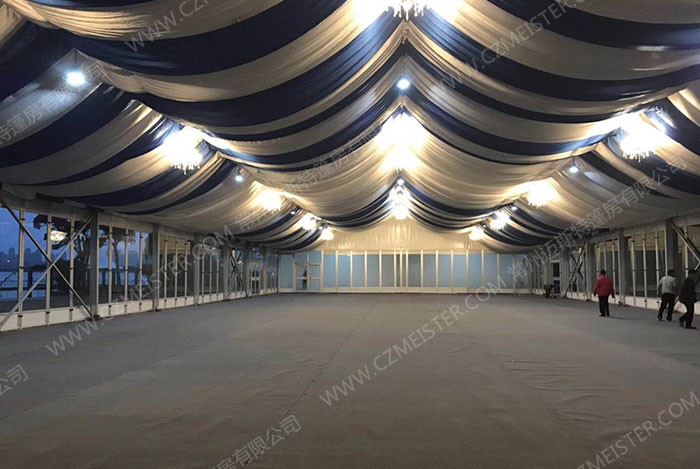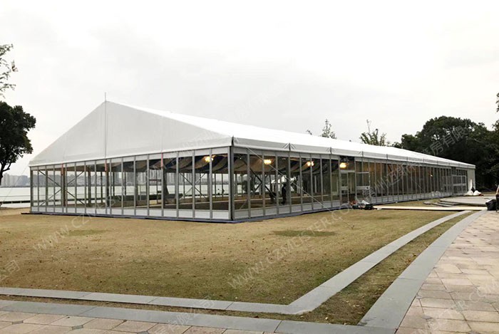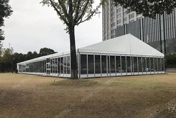2. 鋁合金框架、PVC篷布高頻焊接,確保篷房產(chǎn)品安全穩固;