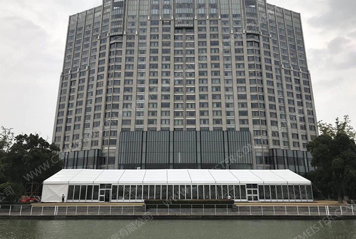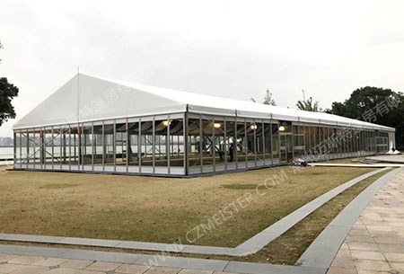 會(huì )議篷房顧名思義就是用來(lái)舉辦會(huì )議使用的,可用于多種層次及規模的會(huì )議的篷房,采用玻璃幕墻的設計能夠使其看起來(lái)更加高大上。邁斯特商務(wù)會(huì )議篷房具有較強的靈活性、穩定性以及經(jīng)濟性,可以反復拆搭使用,并具有長(cháng)達20年之久的使用壽命。